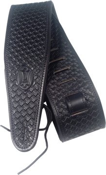 - Carving Leather Guitar Strap, 3" Wide, with Tooled Basketweave Pattern and Foam Padding - Black
