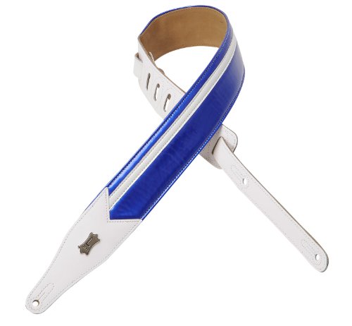 Levy's Leathers Guitar Strap M17FS-XL-BLU 2½" feather-stretch vinyl guitar strap with leather racing stripe, foam padding, suede backing, and leather ends. Reviews